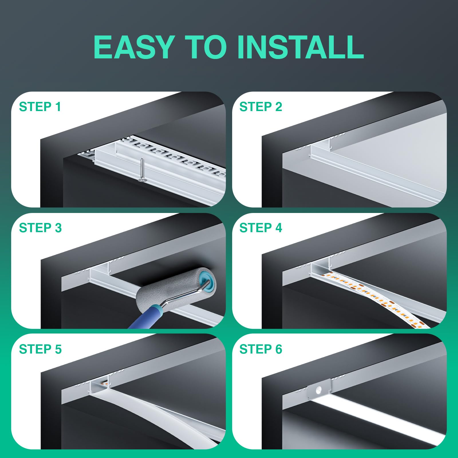 LED Unterputzprofil 2m (6 Stück) – Flächenbündig Ohne Fräsung, Für LED Streifen Bis 20mm, Inkl. Diffusor