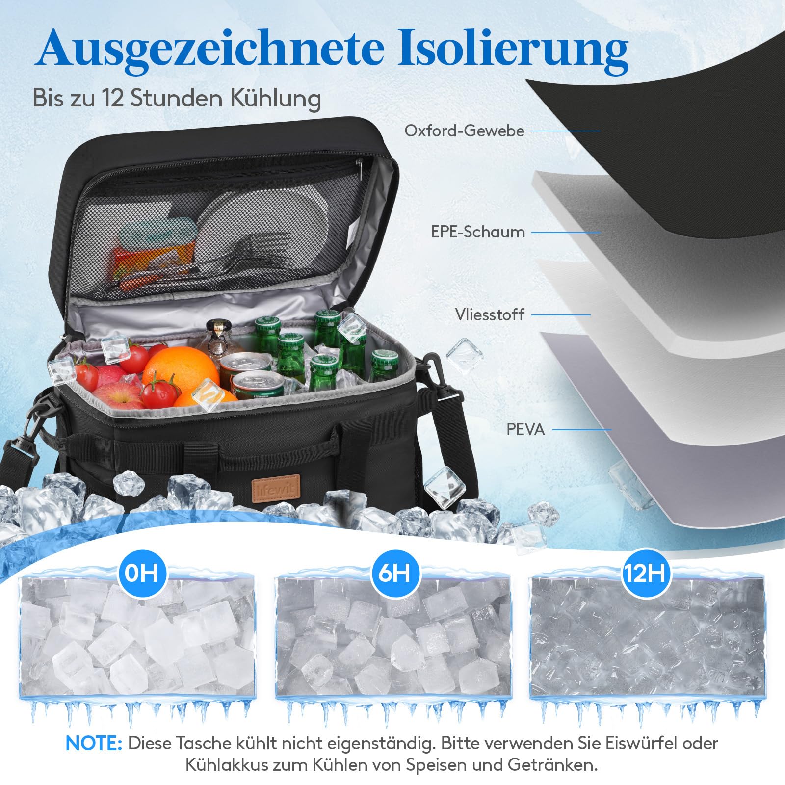 15L Kühltasche Faltbar - Isolierte Picknicktasche Für Essen & Getränke, Bis Zu 5 Std. Kühlung